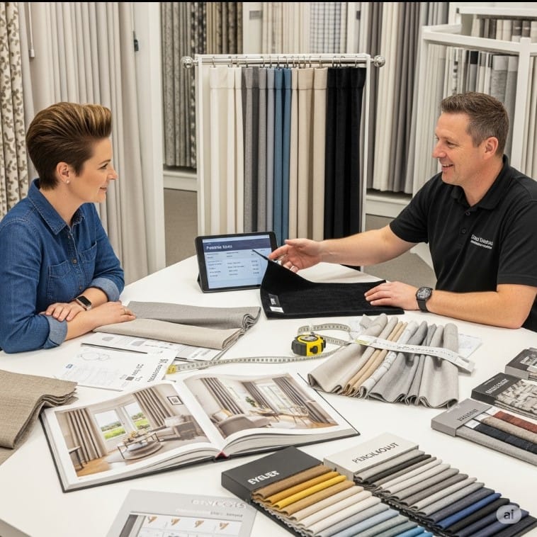 Cung cấp thông tin: Trao đổi về nhu cầu của bạn, bao gồm loại rèm (rèm cuốn, rèm roman, rèm vải…), chất liệu, màu sắc và phong cách mong muốn.
