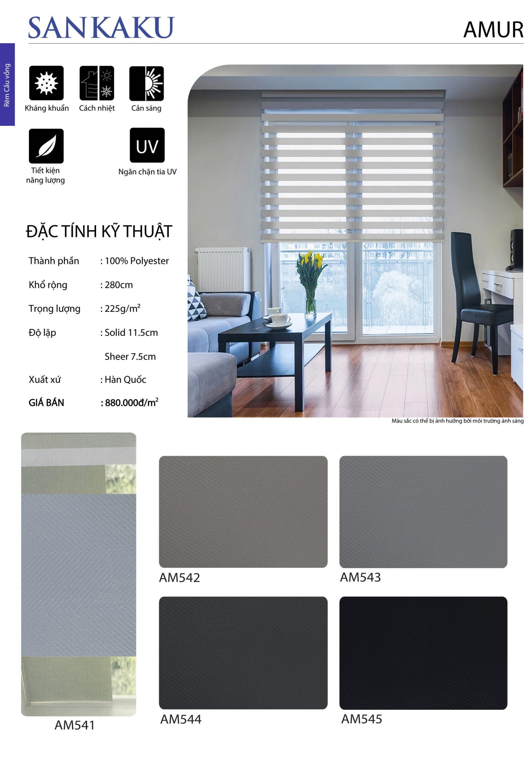 Bảng tóm tắt thông số kỹ thuật sản phẩm Rèm Sankaku Amur