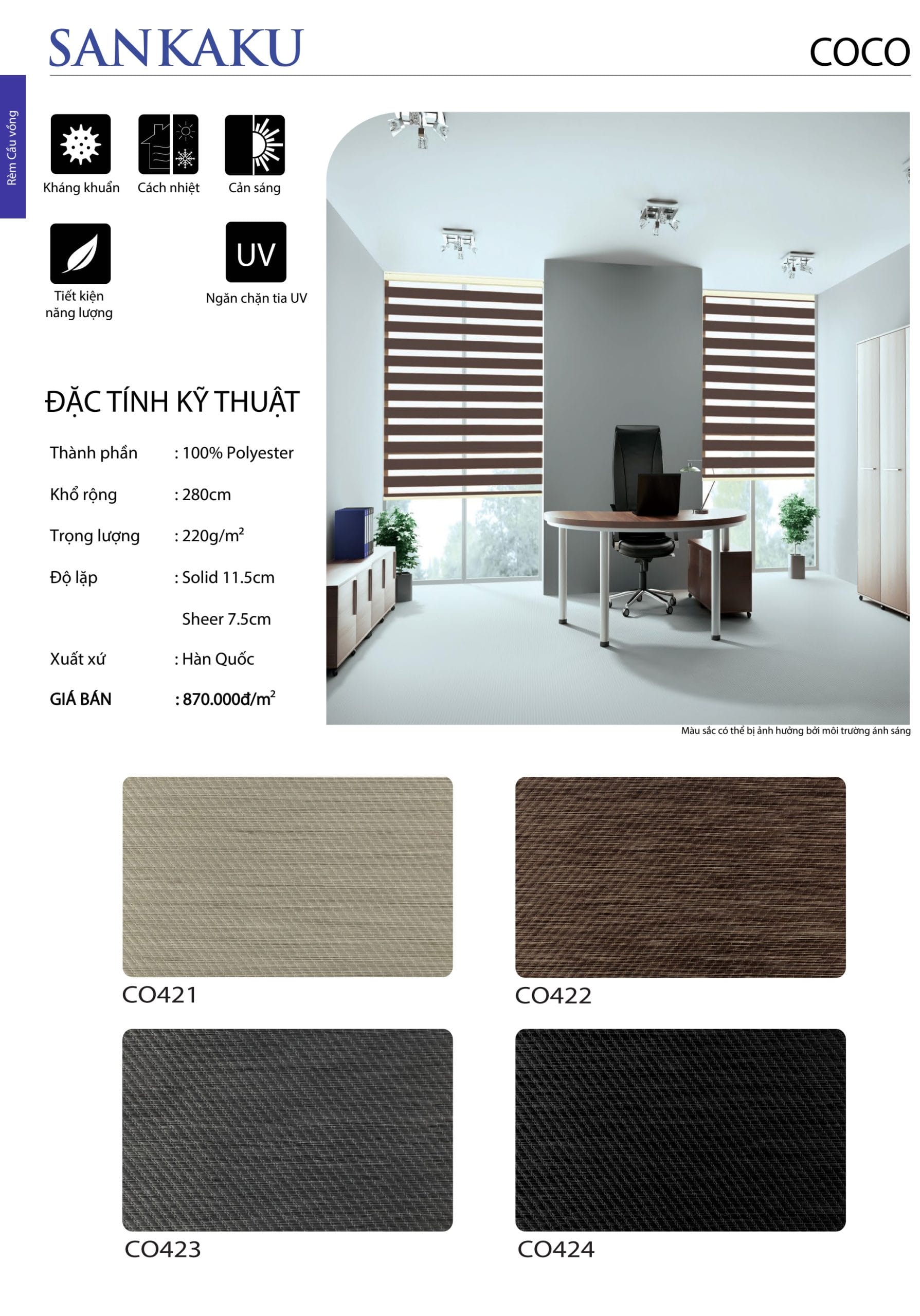 - Tiết kiệm năng lượng: Nhờ khả năng cách nhiệt tốt, rèm cầu vồng SanKaku COCO giúp giảm nhiệt độ phòng, từ đó tiết kiệm điện năng cho hệ thống điều hòa.